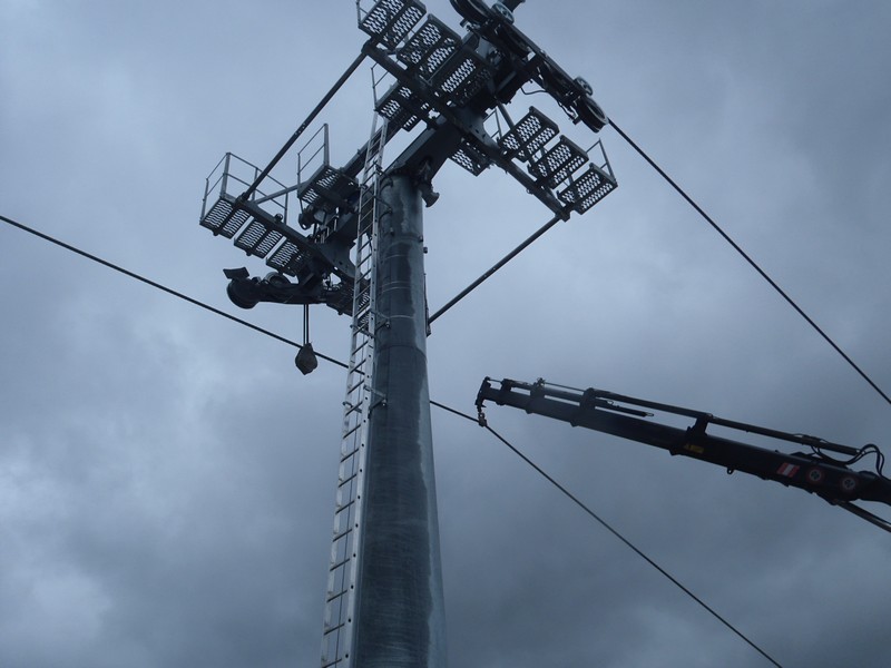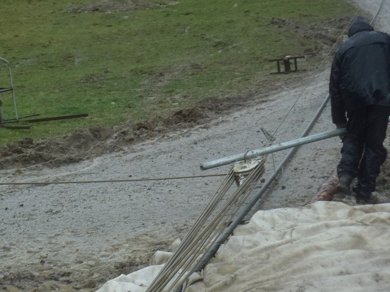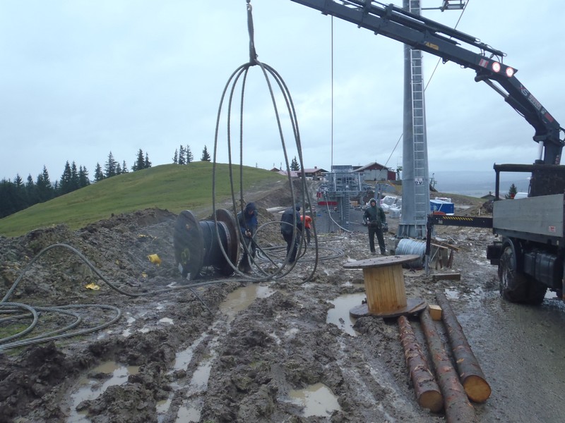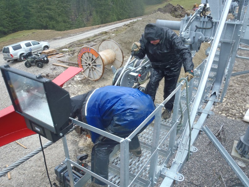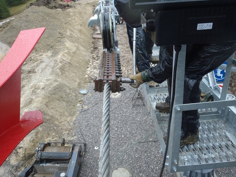 - Hauptseil für die Spleißarbeiten abgespannt