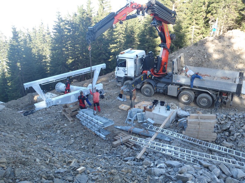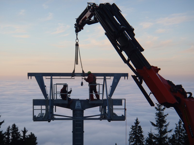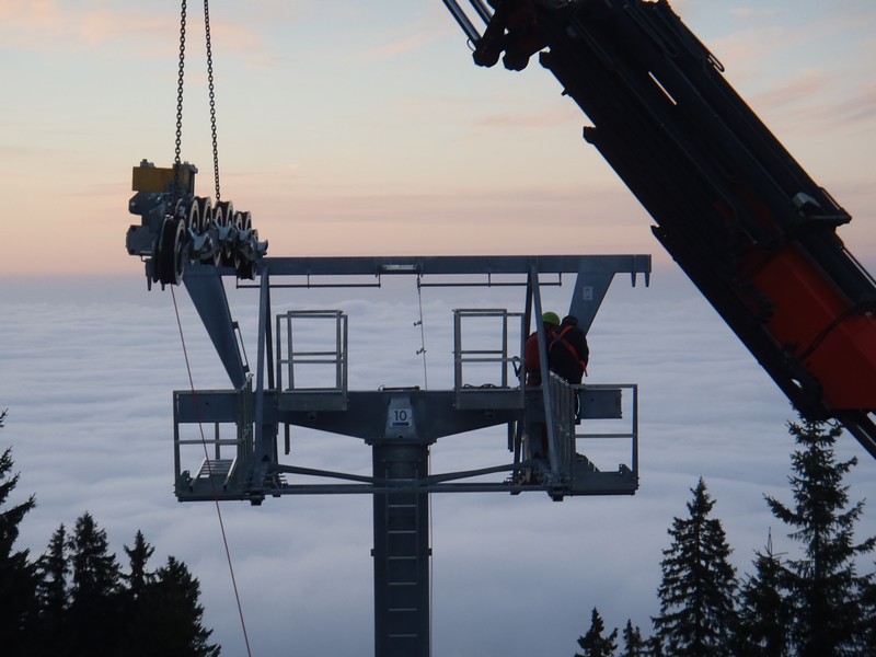 Montage der Seilbahntechnik: