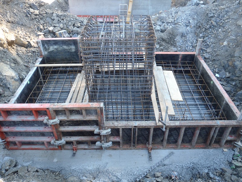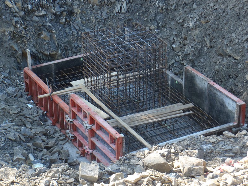 - Stütze 7: Fundamentkopf geschalt und mit Einlegeteile vesehen