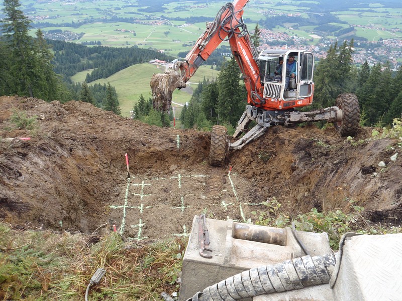 - Baugrube für Stütze 7 ausgehoben und erste Bohrungen durchgeführt