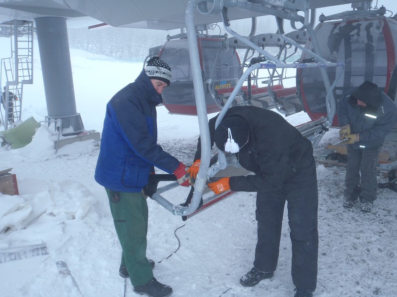 - Montage der Kabinen und Sessel
